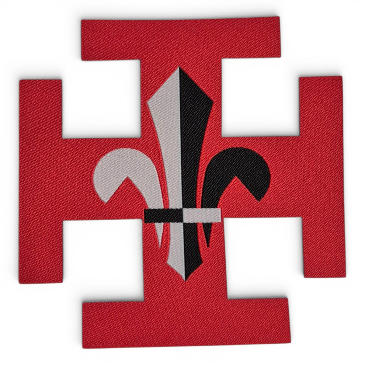 Croix SUF tissée et découpée à la forme avec dos thermocollant.