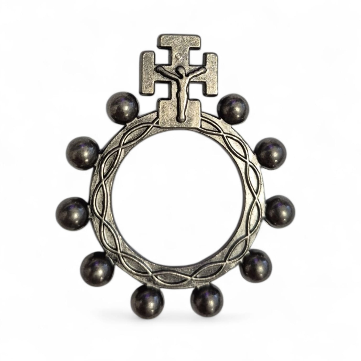 Dizainier métal croix potencée. En zamac injecté, finition vieil argent.