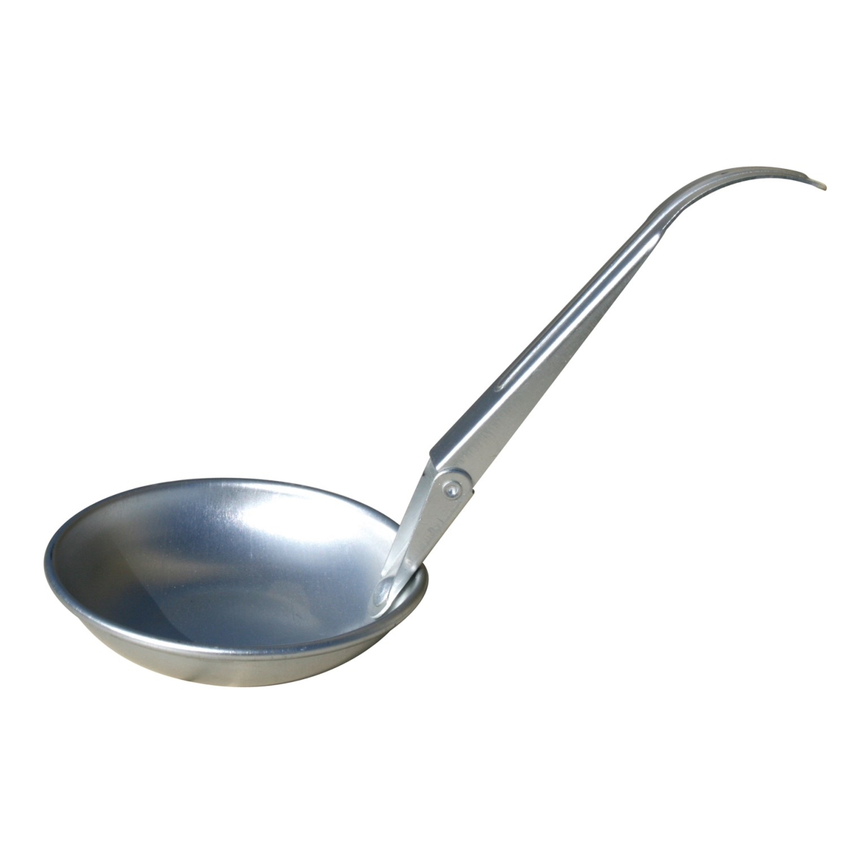 Louche en aluminium de diamètre 9 cm, manche pliant.