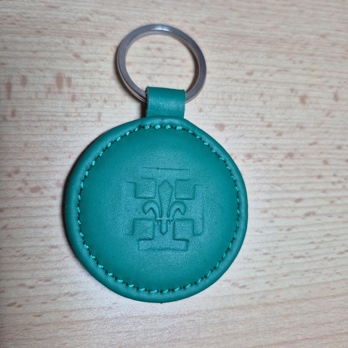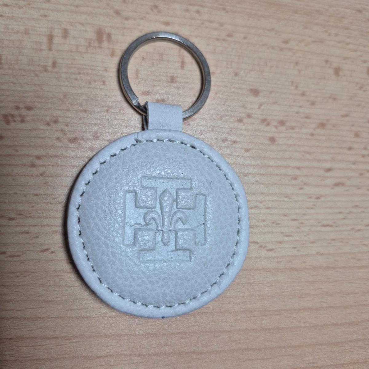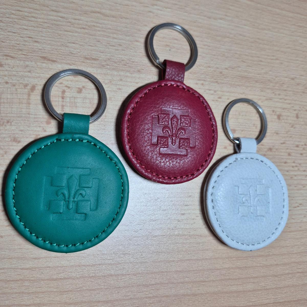 Porte clés rond en cuir de couleur avec logo croix SUF.