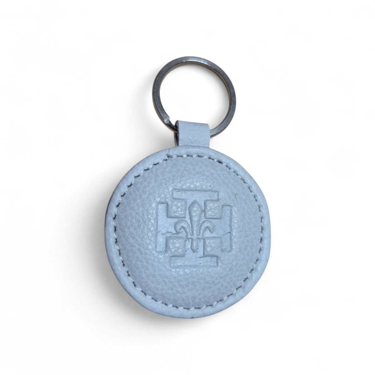 Porte clés rond en cuir de couleur avec logo croix SUF.