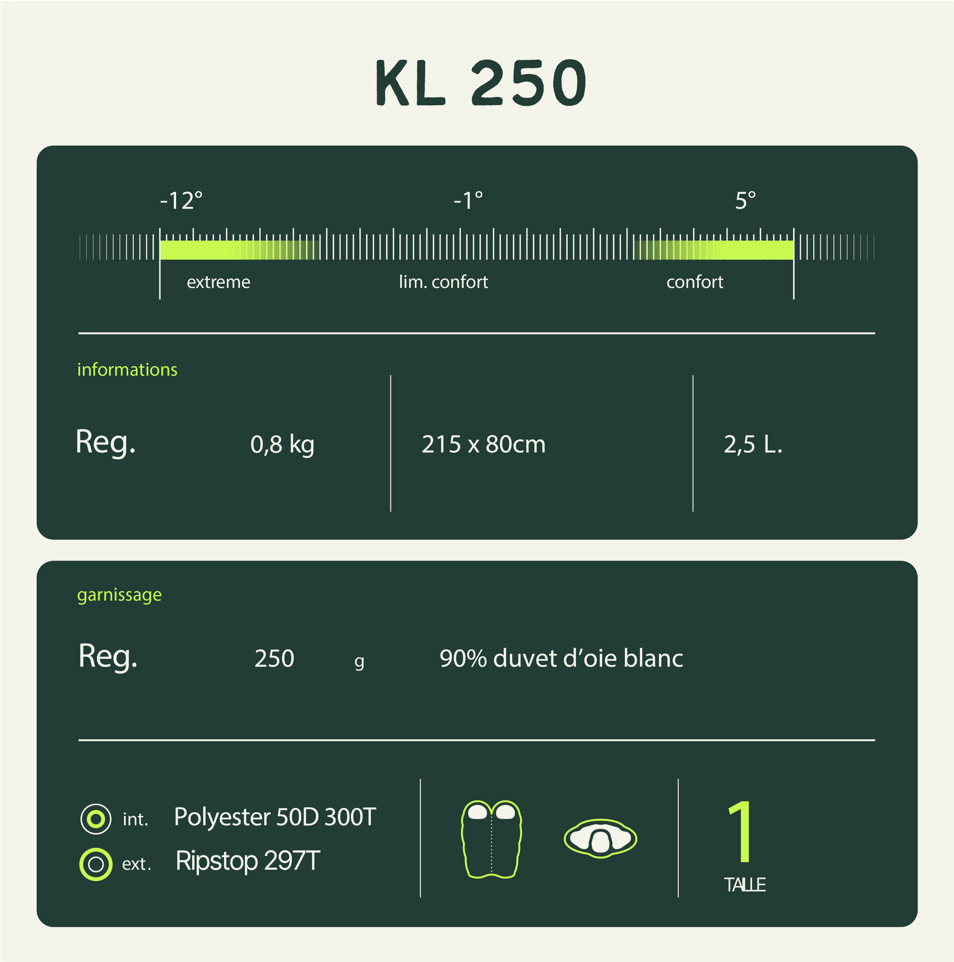 Sac de couchage duvet KL250