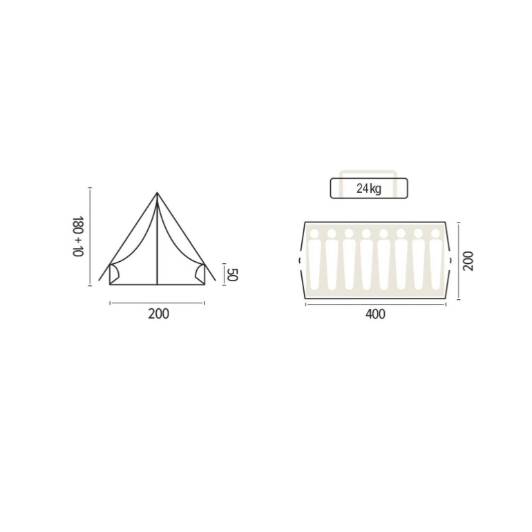 Double toit 100 % coton de 200 g/m² imperméabilisé et tente intérieure en polycoton 140 g/m².